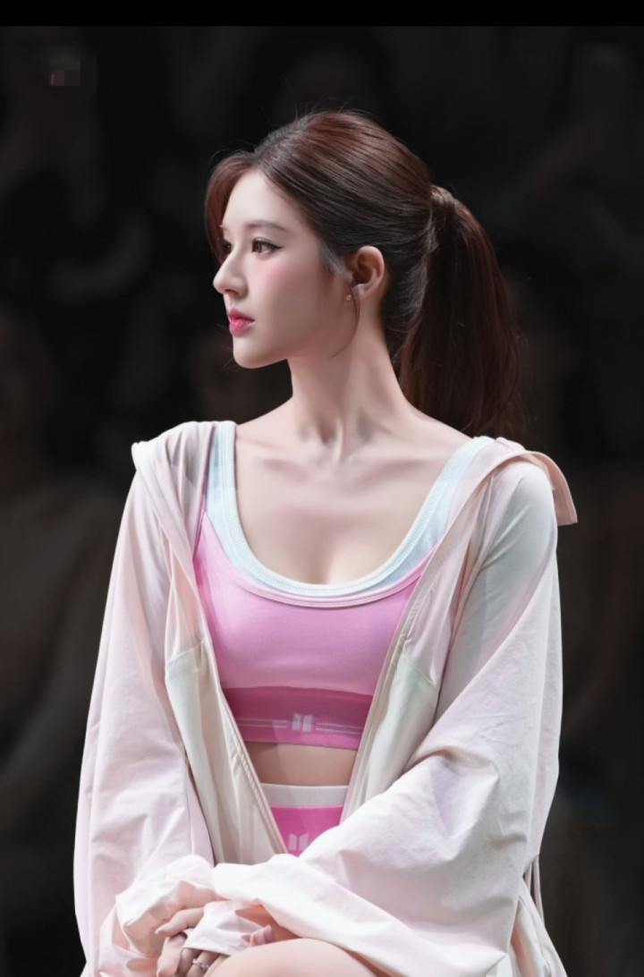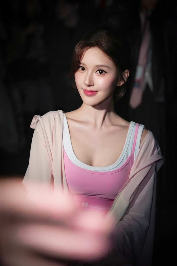 AG庄闲游戏官网首页 赵露想亮相上海时装周, 身穿粉色通顺套装, 妆容粉透, 如水蜜桃