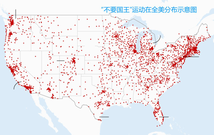 他们高举写着不要国王的口号,声浪勾通三街六市,900万东说念主,如急流一般席卷宇宙,成为好意思国历史上领域最大的抗议活动之一。