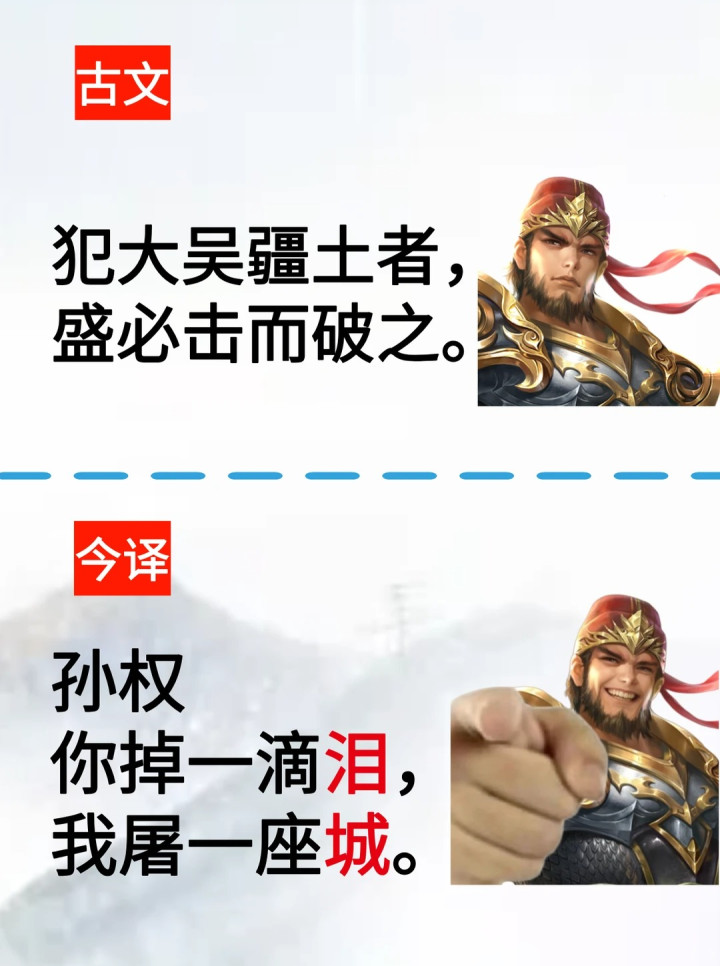 今译:孙权,你掉一滴泪,开云体育我屠一座城。