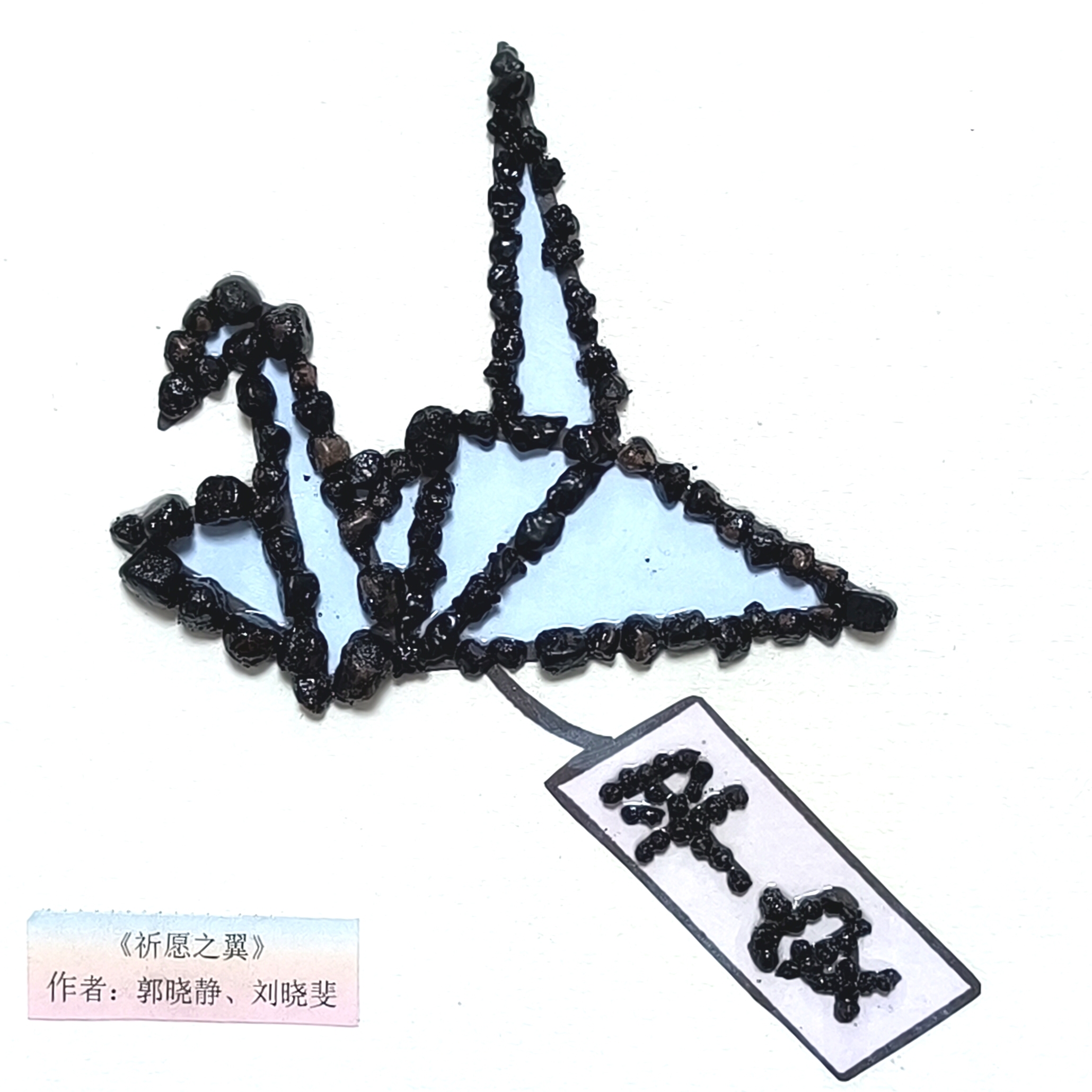 《石钟》谐音寄意,将结石的“繁难”转动为墙上的松弛;《纸鹤》承载吉祥的祝贺;《踏浪》里的结石拼成脚印,记号着患者迈向康复的旅程。