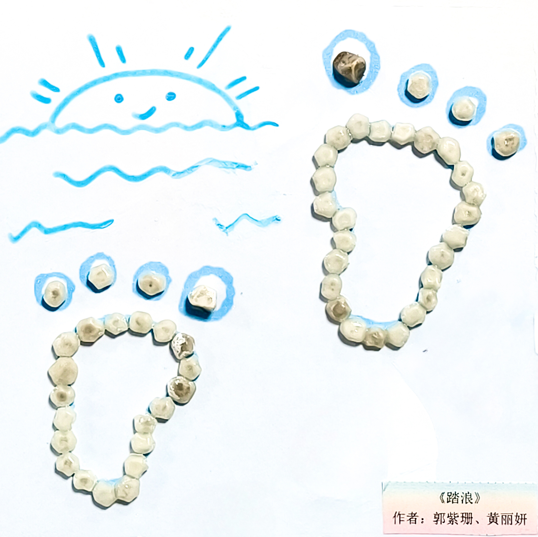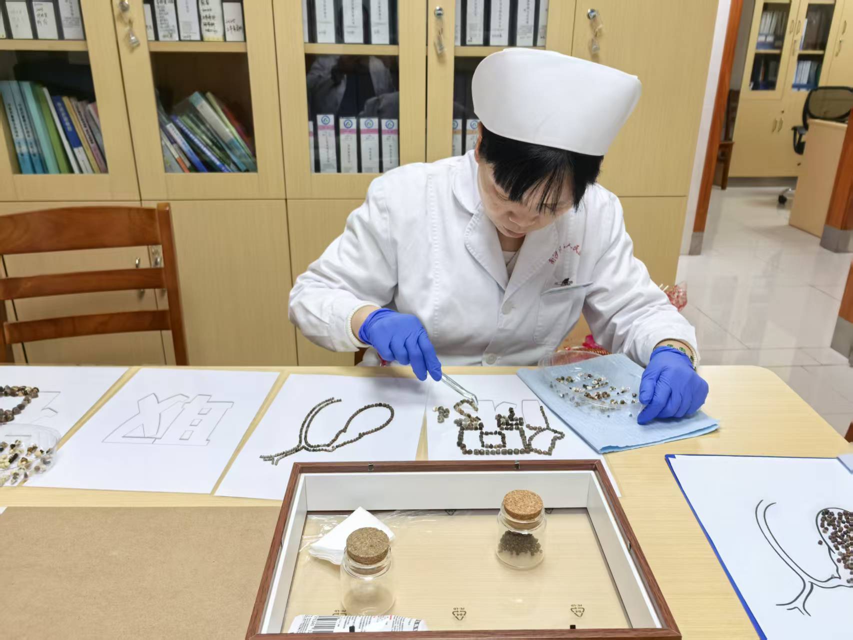 “每天靠近这些取自患者体内的结石,咱们就筹商,它们除了用于医学标本展示,还能承载些什么?”照顾长彭育楠说谈。随后,照顾们经心挑选结石,历程清洗、消毒后,通过构念念、粘贴,让鉴定的结石化作灵动的“神采”与“笔触”。