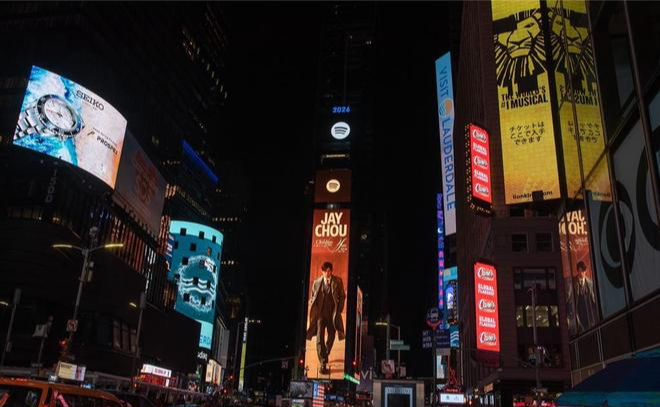周杰伦巨幕电子告白牌登上纽约时期广场。